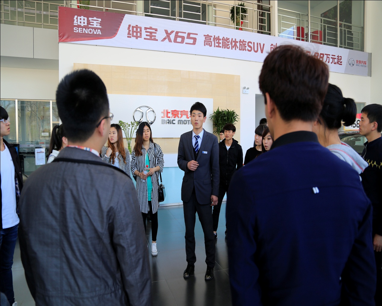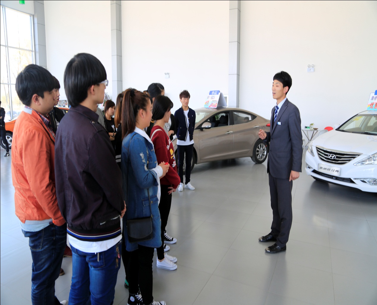 考察的第二站是北京汽车4s店。北京现代旗舰店销售总监系我系2012届汽车营销毕业生张洋,他对北汽,现代的企业文化、工作职位做了详细介绍,并对汽车营销同学进行面试。面试过程中,学生积极参与,认真对待,希望能在接下来的实习中顺利完成实习教学环节,也为以后的就业夯实基础。