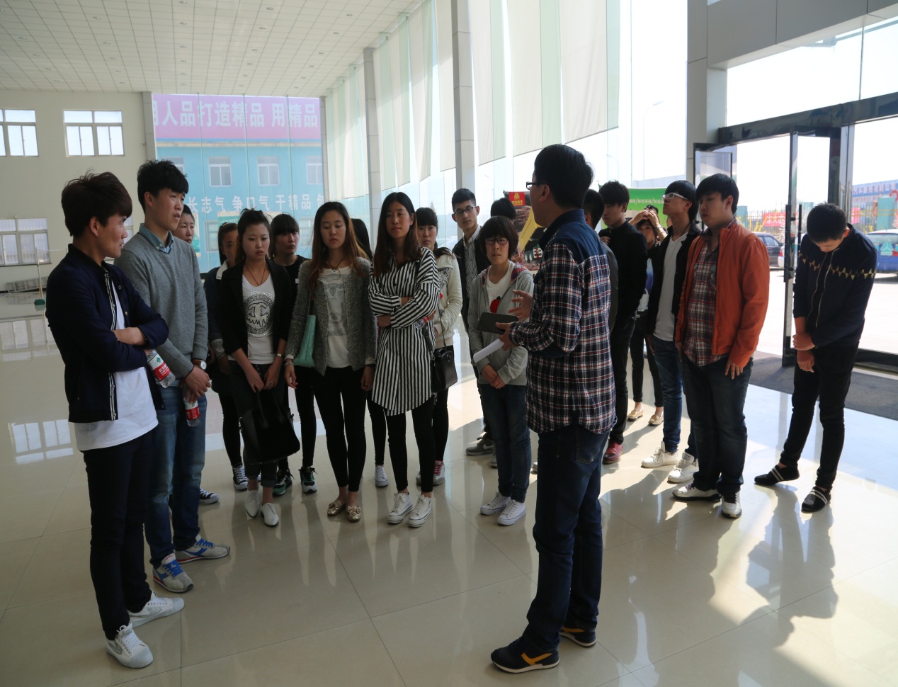 为了贯彻以就业为导向,以专业技能为重点,专注能力培养的学院办学理念。2015年4月22日,机电工程系主任王辉,副书记王跃,办公室主任张朝晶,教研室主任张忠哲、黄清学及辅导员舒峻峰老师带领2013级汽车专业的学生进行了一次实习企业考察活动。