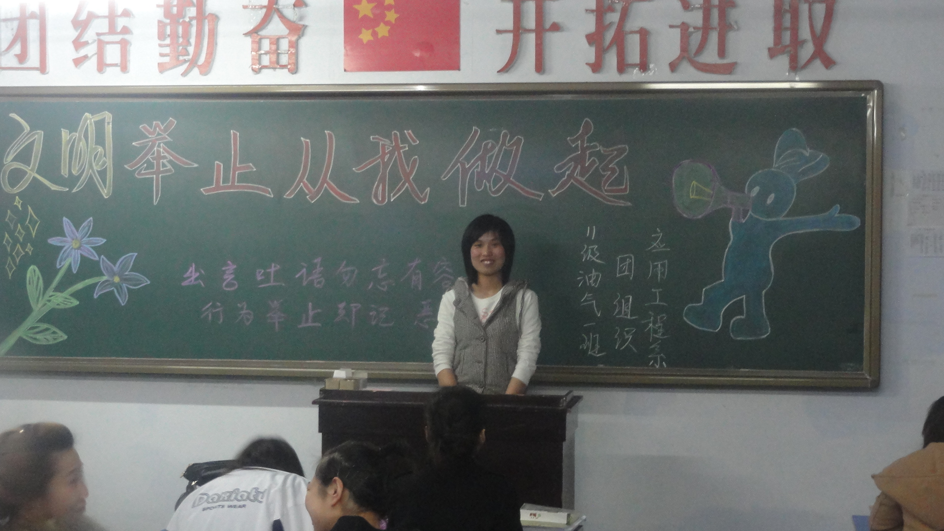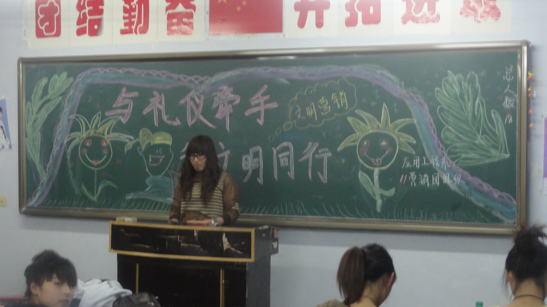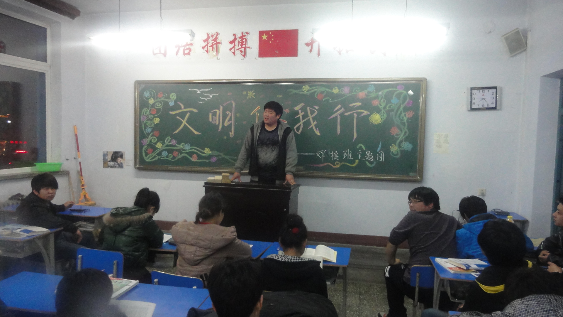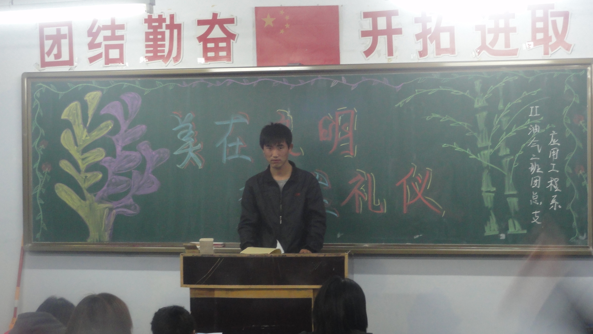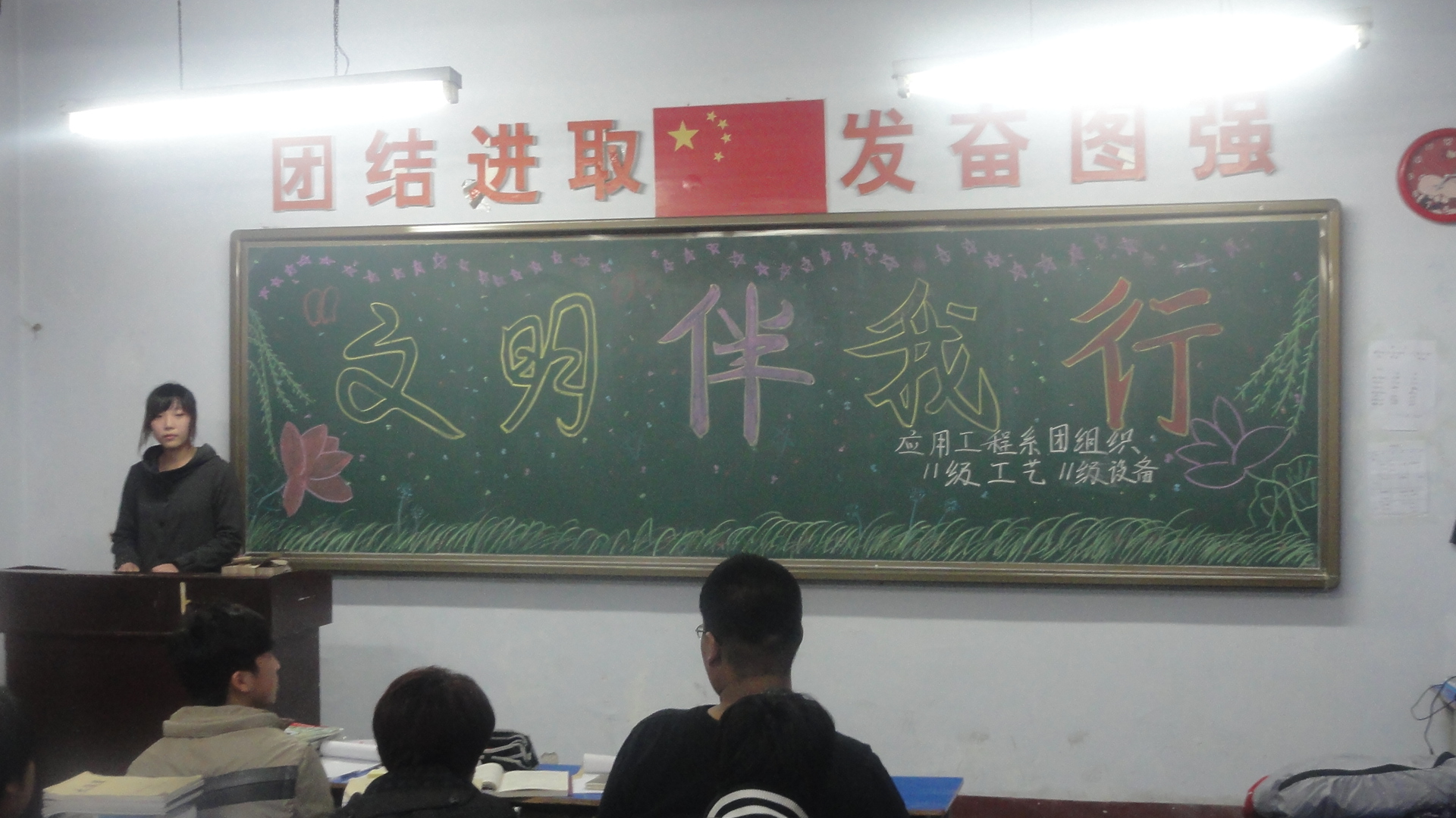 礼仪自千古传来,文明从现在做起。为进一步提升学生的文明素养,培养学生良好的行为习惯。3月28日晚自习,系学生工作室统一组织了各班开展以“摒弃恶习、走向文明”为主题班会活动。主题班会从方案设计、节目排练到活动主持全部由学生充当主角,通过朗诵、演讲、辩论、歌曲等丰富多彩的形式诠释了文明的内涵,全体学生受到了一次深刻的自我教育。院领导张素霞副书记、学生处阙英伟副处长来到我系,在赵恩勇书记的陪同下参加了11级有机工艺班的主题班会,聆听同学们关于“文明伴我行”的主题班会发言,给予高度评价,并强调,高等学校是社会主义精神文明、公民道德的重要阵地,建设文明校园、提升个人文明素质是发展社会主义高等教育的必然要求。通过主题班会的开展教育,使我系学生进一步增强文明意识,加强文明修养,提高文明程度,树立文明形象,成为当代文明的大学生。