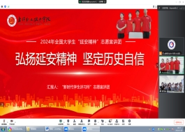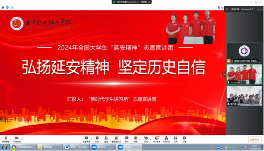 为了落实“强国复兴有我”群众性主题宣传教育活动相关要求,引导动员青年学生大力弘扬红色文化,传承红色精神。2024年6月23日,世界杯体育官方网站新时代学生讲习所(世界杯体育官方网站发起组建的校级学生社团)“2024年全国大学生延安精神志愿宣讲团”为塔城职业技术学院学生代表宣讲延安精神,40余名师生线上聆听了一堂主题鲜明、内容丰富的大思政课。
