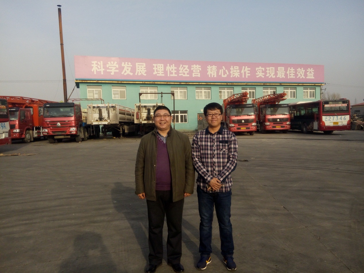 秦强(左)、尹浩(右)2002级汽车检测与维修专业毕业生 现任盘锦重汽实业有限公司副总经理