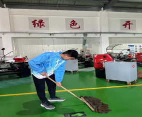 活动伊始,同学们有序领取扫把、抹布和拖把等工具,积极主动的开始对实训厂房和校园甬路进行清扫。他们不怕脏、不怕累的认真清扫每一个死角,擦拭每一台设备。