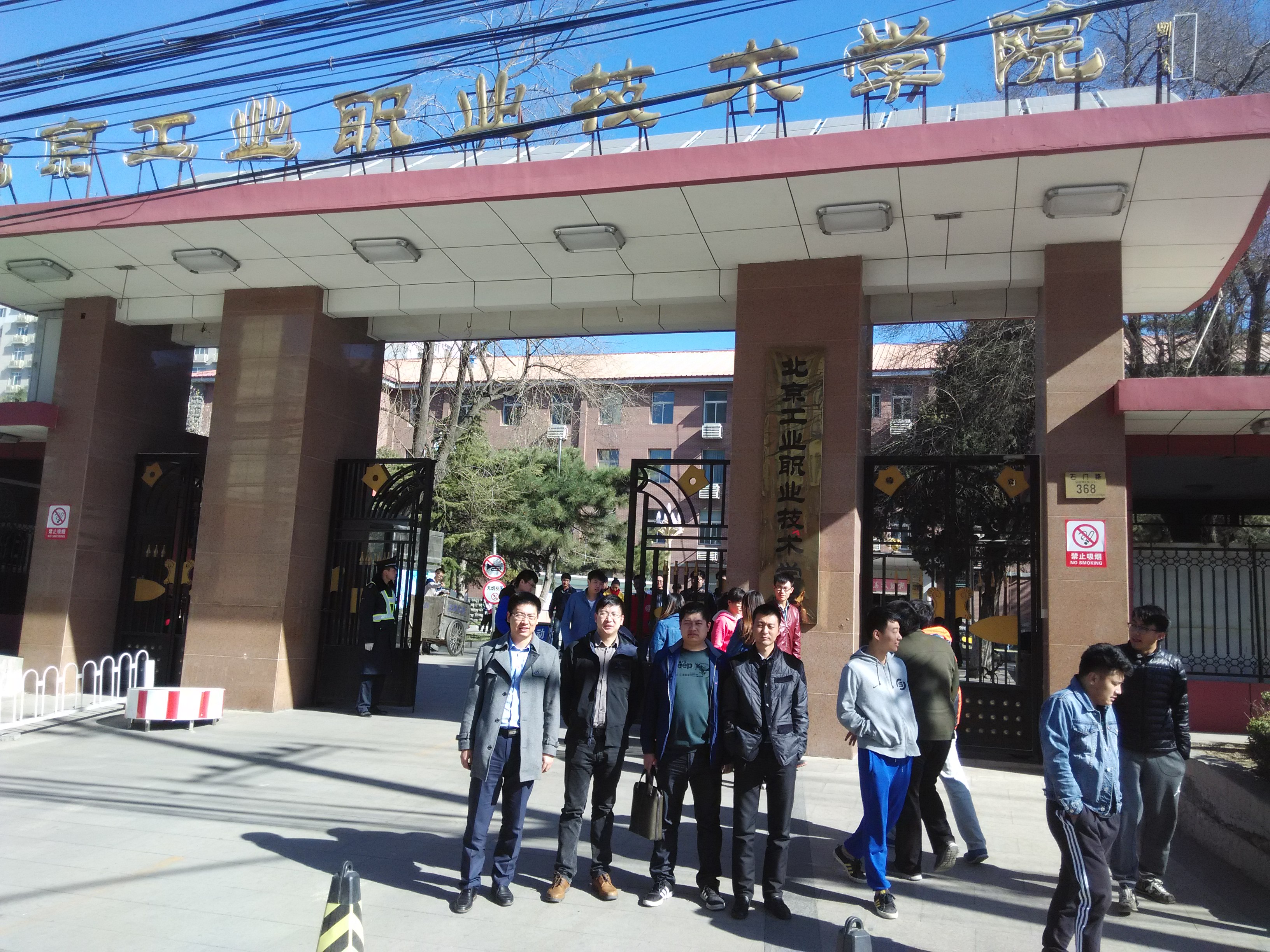 2015年3月23日,为筹建我院电气信息专业群实训室,同兄弟院校交流建设经验,机电工程系王辉主任,孙伟副主任,计算机教研室高建主任,网络中心魏孔鹏主任,一行四人到北京工业职业技术学院、北京H3C公司参观考察学习。